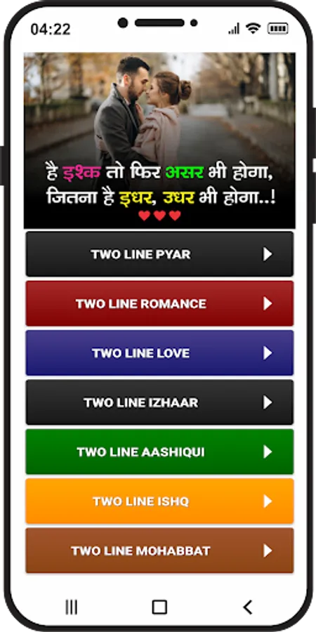 👉 Cool font: Good and stylish font is also necessary in app. So we have added a bold and stylish font to this best Two Line Love Shayari 2023 apps.