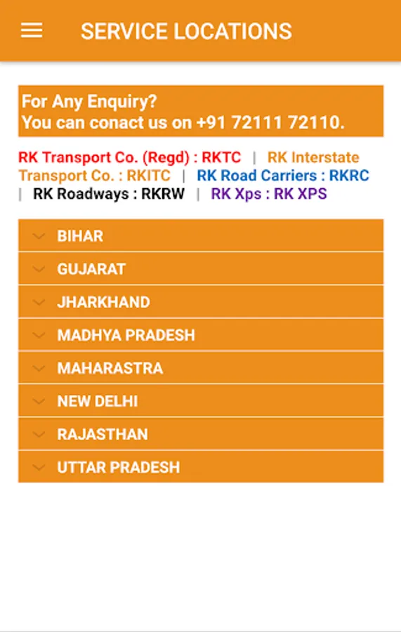 With more than 300 fleets & 100 Branches RK Group cater transportation needs of various regions of the country throught its group companies. RK Group has strong presence in GUJARAT, MAHARASHTRA, MADHYA PRADESH, RAJASTHAN, DELHI, UTTAR PRADESH, BIHAR, & JHARKHAND. RK Group is extending its services in other regions of country viz. West Bengal, Orissa, Punjab etc.