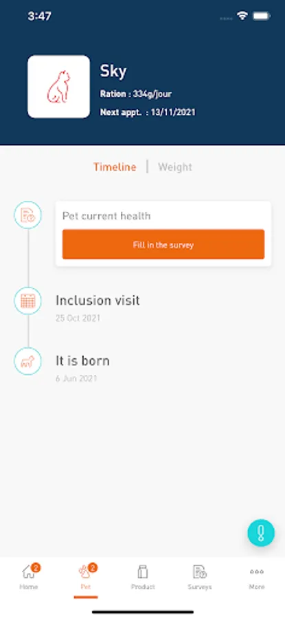 NutriWatch is an application for monitoring the evolution of your pet’s well-being and satisfaction with his diet.