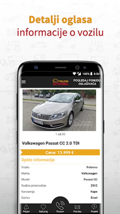 Sačuvajte odabrane oglase, kontaktirajte oglašivača, podelite oglas sa prijateljem koristeći interfejs aplikacije koja je prilagođena Vašem Android telefonu i tablet uređaju.