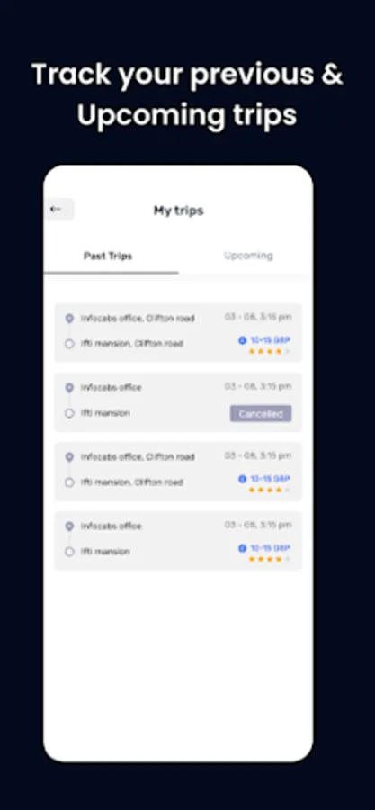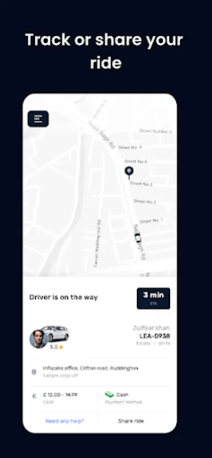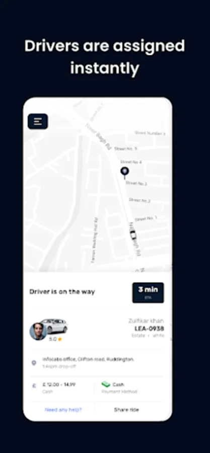 Book a taxi instantly in your area with a few taps of a button with the DRIV3R WF app. Save your favorite journeys for convenient and quick bookings in the future.