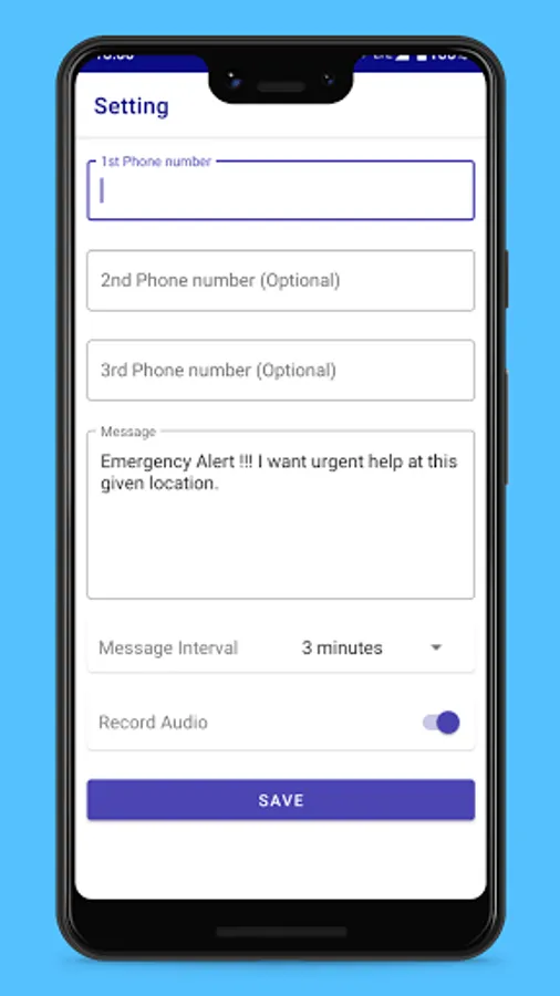 ◆ Send SoS message with real time location in 3,5,10 minute as selected by user.