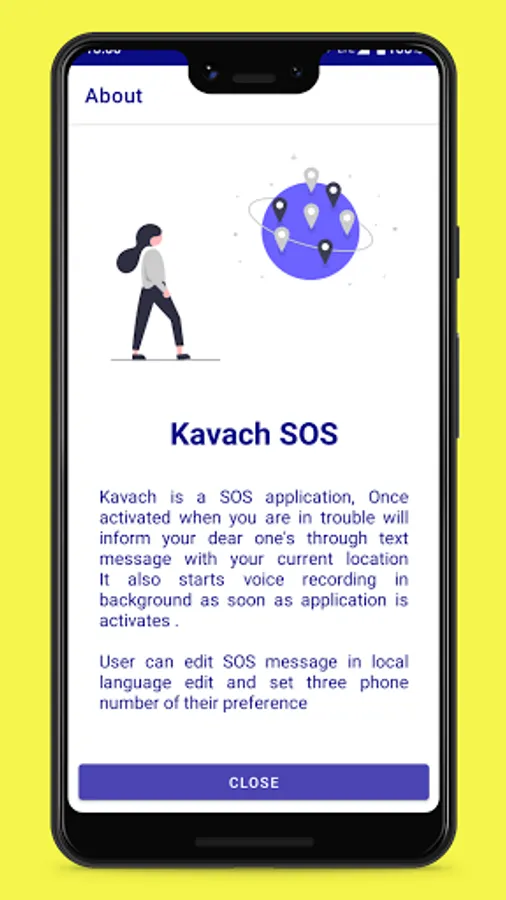 Kavach is SOS app ,once activated when you are in trouble will inform your dear one's through text message with your current location.