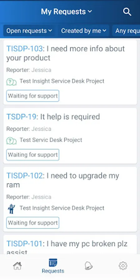 * Filter your open requests, closed, created by you, etc.