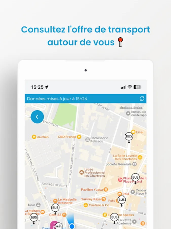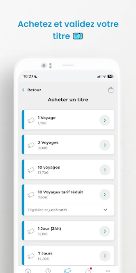 Purchase and validation of tickets, search for routes and follow-up of your journey in real time, timetables on your lines, traffic information, transport offer around you... find all the essential solutions at your fingertips.