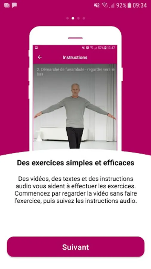 The Tavo® Exercises against vertigo application is a complement to the treatment of benign positional vertigo, acute vestibular syndrome or chronic vertigo. The Tavo® Exercises against vertigo application provides users with a therapeutic program specifically adapted for each indication.