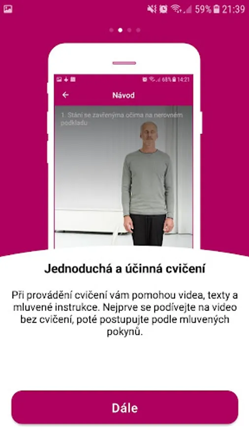 - instructions for performing exercises in the form of texts, images, videos and sound support for up to 23 different exercises,