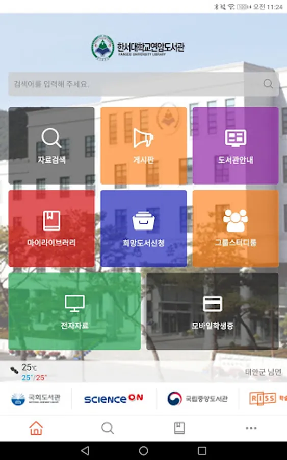 This is a mobile application for Android that allows you to search for book information and loan information of Hanseo University Library, and apply for desired books.