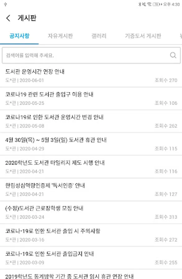 Hallym University (Hallym University) This is a mobile application for Android that you can apply for book information, loan information, and books for library.