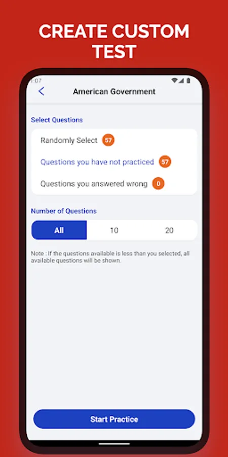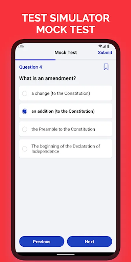 Our app also includes a practice test section, where you can take multiple-choice exams based on the official USCIS questions, including the Civics test. These exams mimic the real USCIS exam and help you identify areas you need to focus on before the big day. The practice tests also include timed exams, so you can experience the time pressure and pace of the actual USCIS exam.
