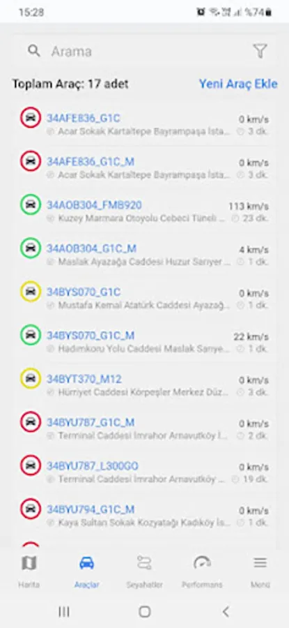 + Real-time location, usage status (moving, stationary, idling) and speed tracking
