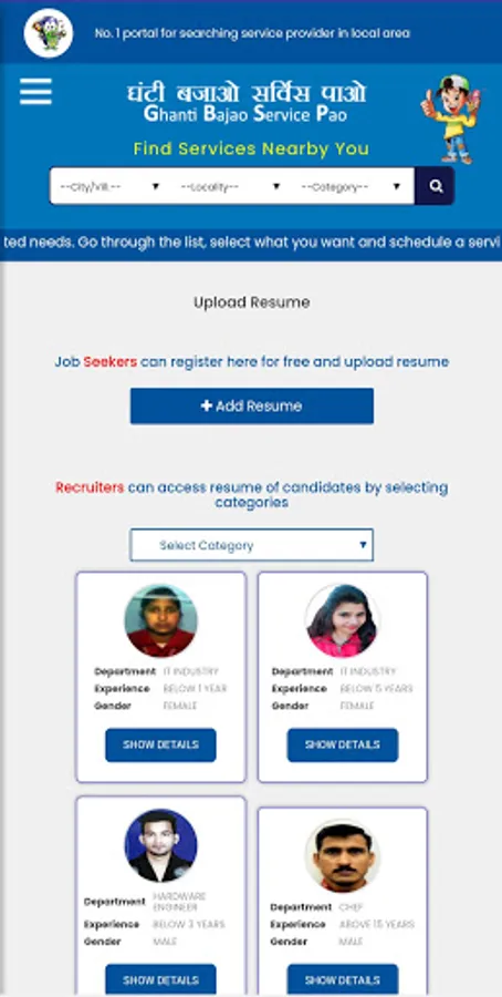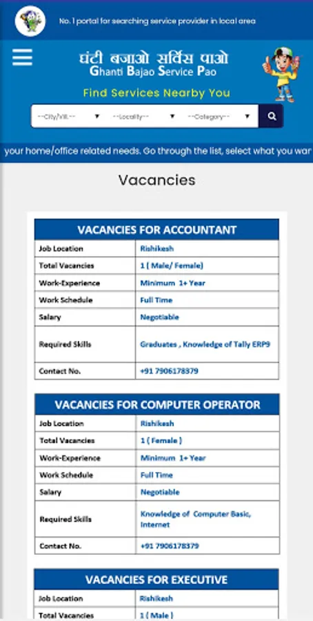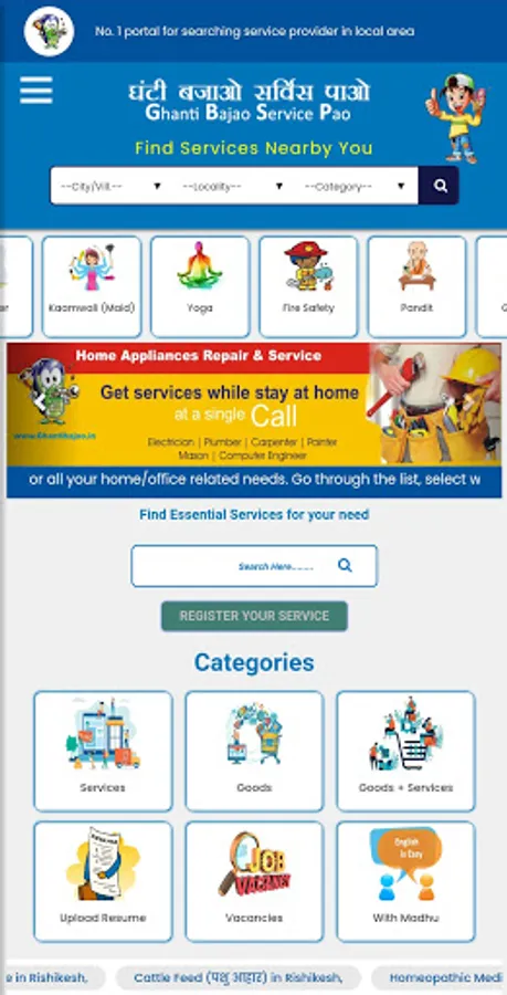 Ghantibajao.in offers the ultimate platform to entrepreneurs as well as professionals to provide their services to the people of their local area. There are several categories under which Ghantibajao.in provide customer services like