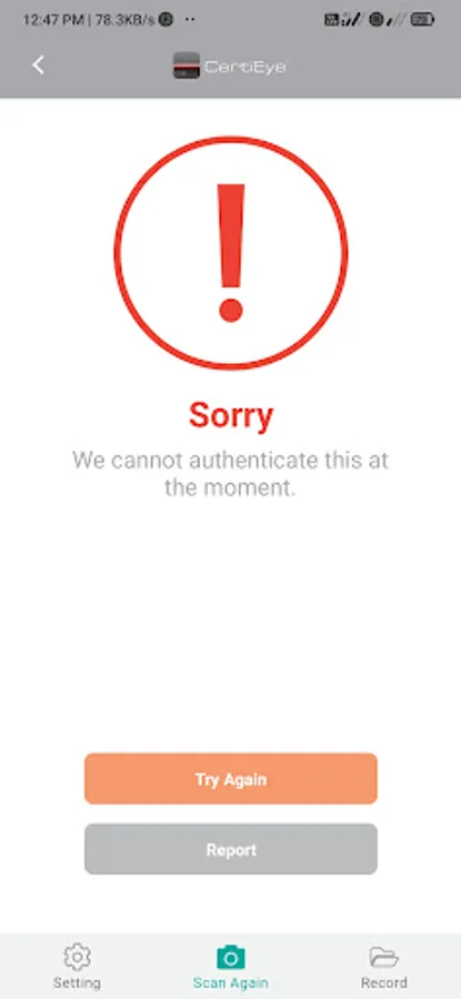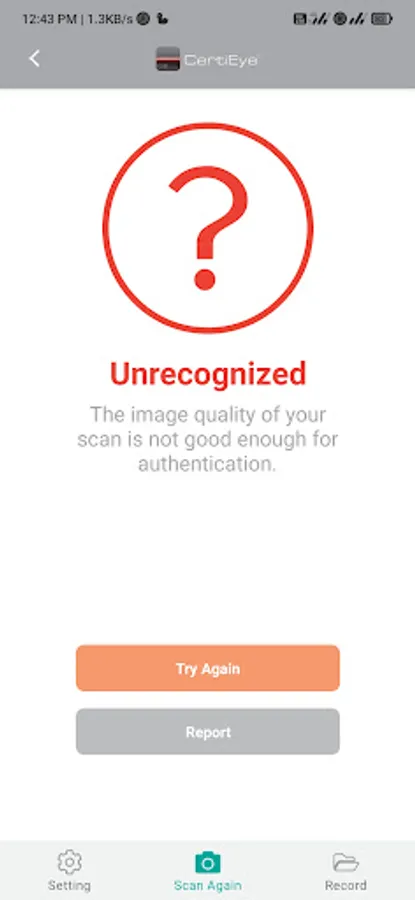 CertiEye will record each snap info. for you. Just click ‘History’ to check your snap history and authentication result.