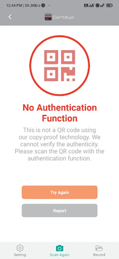 Just aim the four points in parallel to snap Certi Mark. The authentication results can be obtained within a few seconds.