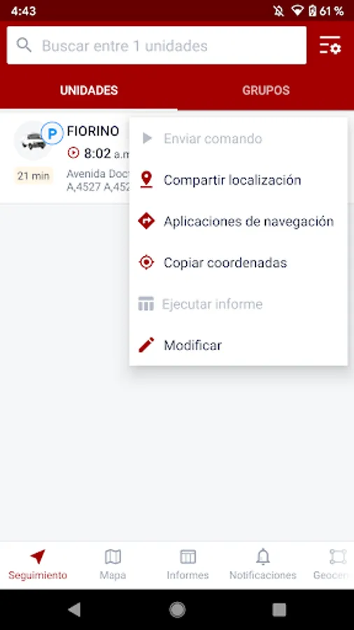 - Map mode. Access units, geofences, routes and event markers on the map with the possibility of determining the location of your mobile device.