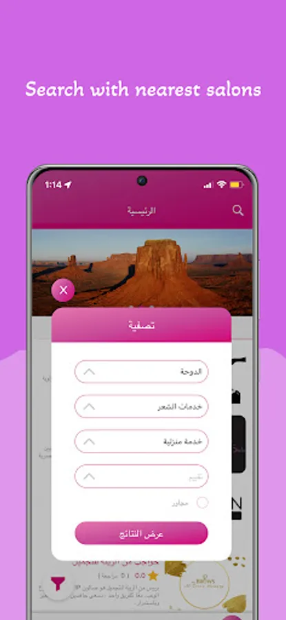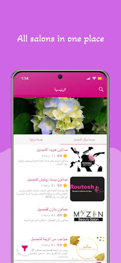 Salons application is the first application that allows you to book salon appointments and choose the services provided by the salons, whether inside the salon or booking home services, as well as buying beauty products and delivering them to the house or receiving them from inside the salon, salonat app is Integrated beauty services