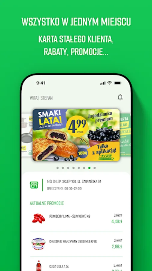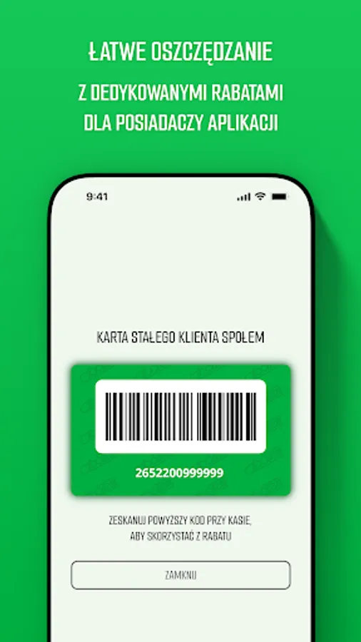 The application is intended for customers of the "Społem Kielce" chain of stores who have or want to set up a loyalty card.