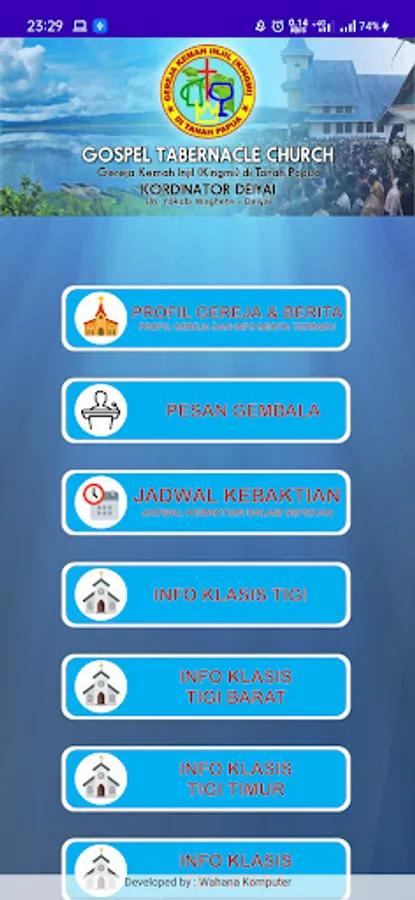 The Church Bulletin application for the Evangelical Tent Church (Kingmi) in Papua, as a means of publication and delivery of information from the Church Management to the entire congregation through the android application.