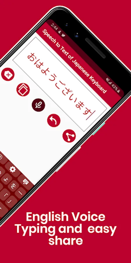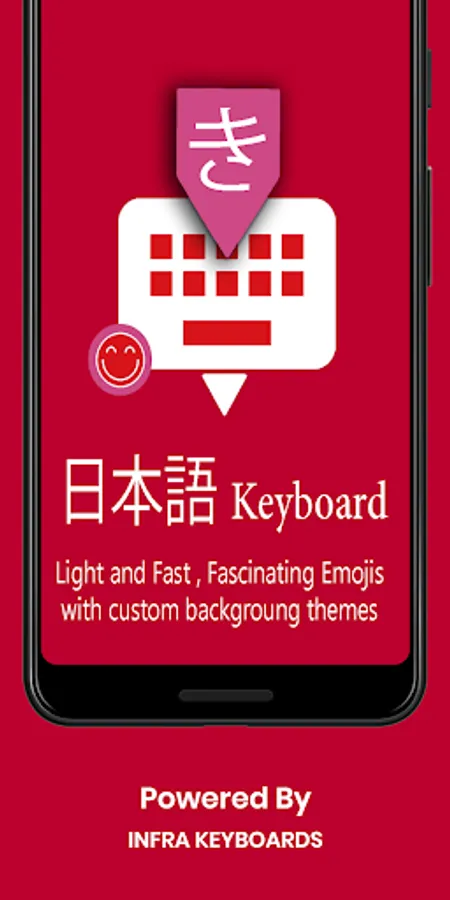 Japanese Keyboard by Infra will allow you to type Japanese ( 日本語 , Hiragana) Language and also English text with the most attractive emojis