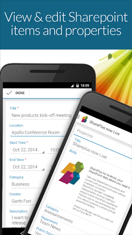 • Update your SharePoint content effortlessly, with SharePlus’ behind-the-scenes content synchronization that keeps all your relevant information updated. Your SharePoint content, including Documents, Libraries, Lists, and items can be accessed and edited even while offline.