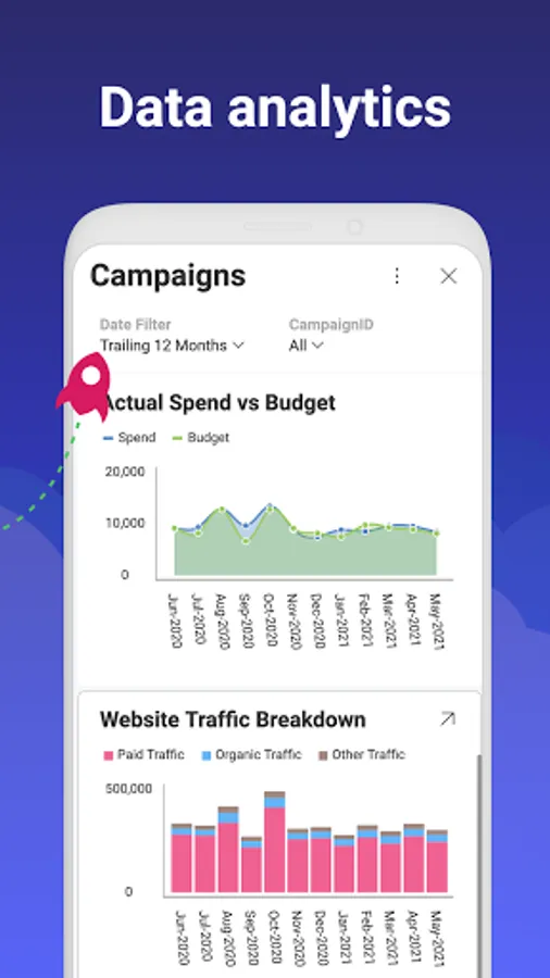 Data lies at the core of Slingshot and every team can now take advantage of data insights for every campaign or project by making beautiful data visualizations with just a few clicks. Share and create discussions around data and create actionable outcomes on those insights. Connect directly to the data sources you use every day, combining them in one dashboard, to get the full picture in one glance.