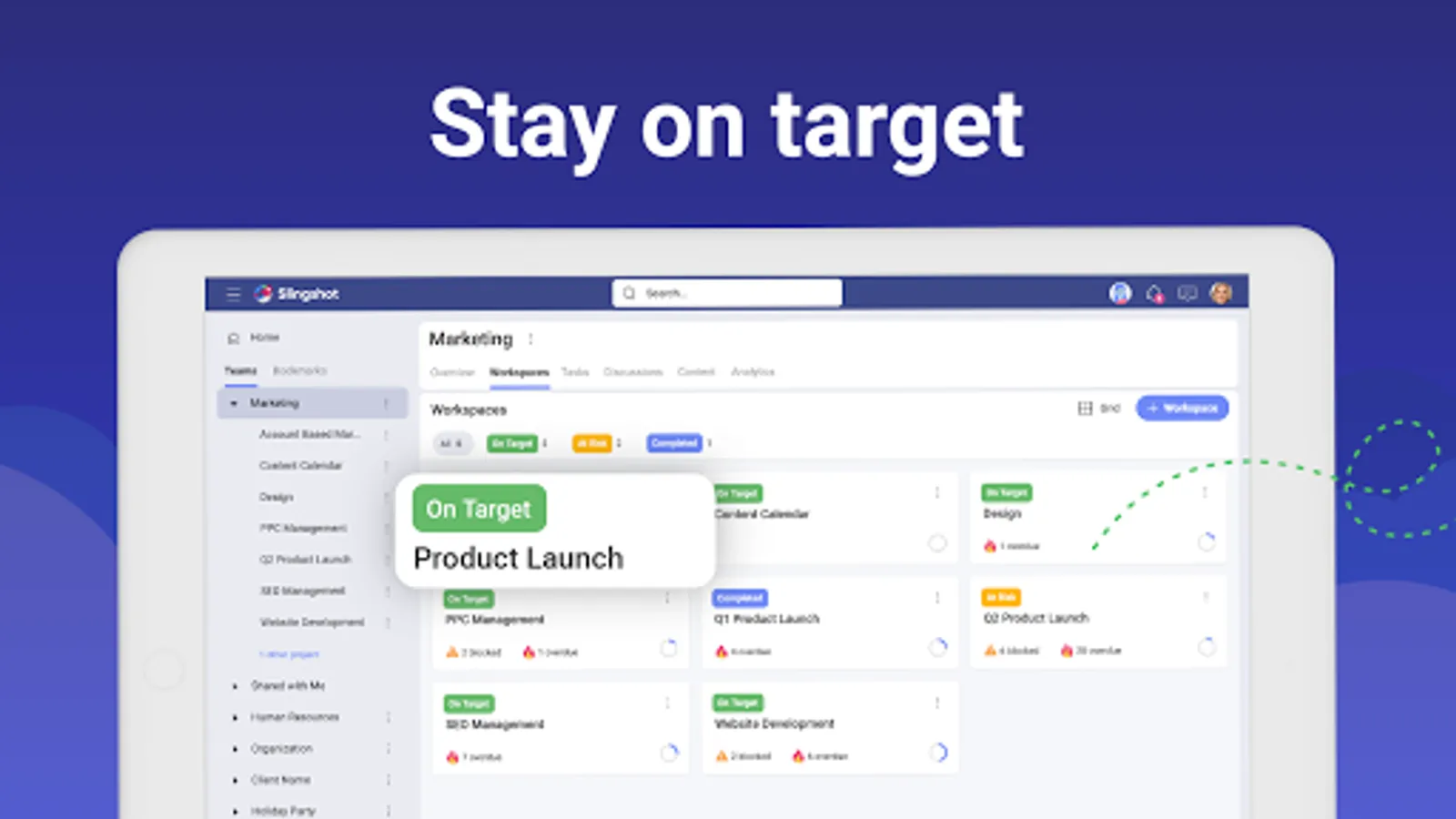 Slingshot is the only digital workplace that connects everyone you work with to data--organizes projects, content and chats--to boost team results. Connect everyone to data and task management, and at the same time makes communication easy, blending all the features a team might need to work without interruptions. Say goodbye to app-switching, keep everything you need in one place and create a culture of ownership and data-driven decision making with this team collaboration tool. Slingshot creates calm by helping coworkers stay on top of their work in a world of hybrid and remote teams, where everything needs to be connected, optimized, and streamlined.