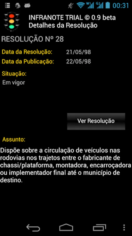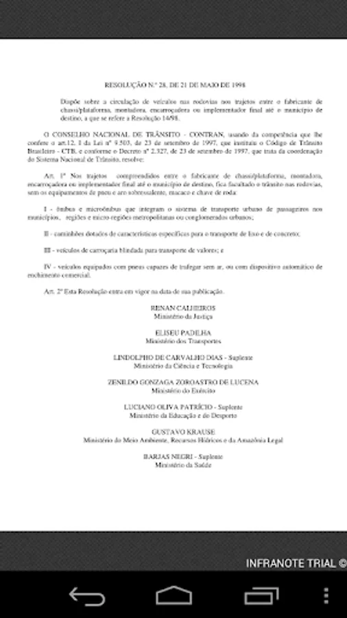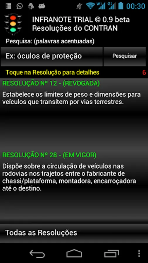 This application contains 12 resolutions for functionality tests, after purchasing the UPDATES PACK you will download and have access to more than 1000 CONTRAN Resolutions, the Brazilian Traffic Code (CTB) and the Brazilian Traffic Inspection Manual (MBFT). Volume I and Volume II) in offline content. EXCLUSIVE PRODUCT FOR ANDROID PLATFORM.
