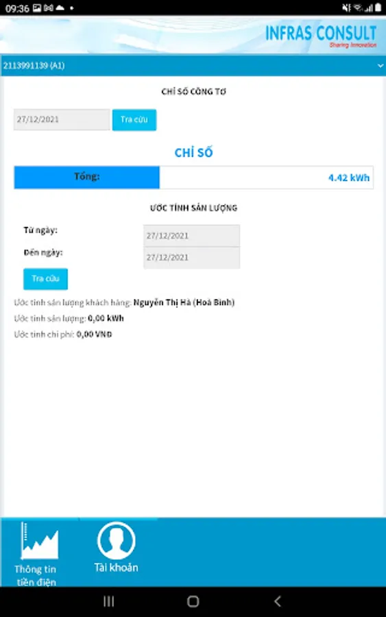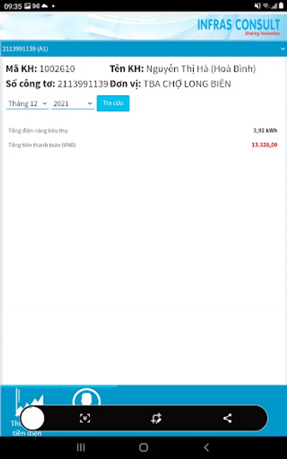 The application sends electricity bill notifications and views the used electricity index