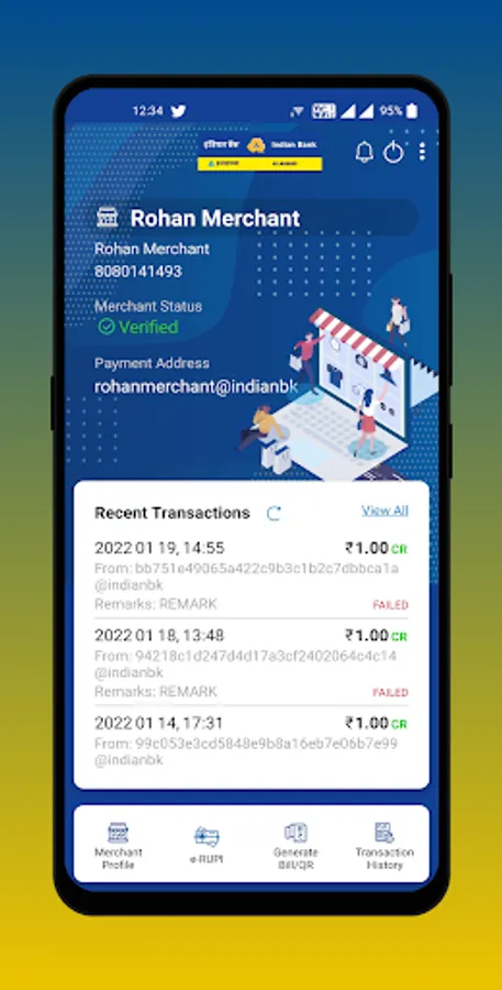 Indian Bank has launched Indian Bank Corporate Merchant - A Mobile Application for Indian Bank UPI QR merchants to Redeem eRupi prepaid vouchers and generate static/dynamic UPI QR. Remitter (customers of the merchant) will scan the QR code and make payment to the merchant using any UPI App. For eRupi voucher redemption facility, beneficiary needs to display the eRupi voucher QR code and merchants will redeem the App using Indian Bank Corporate Merchant App.