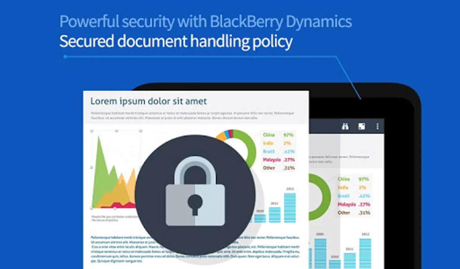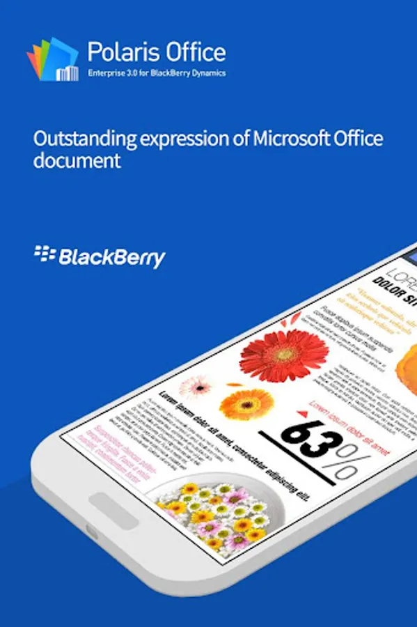 View various document types / Excellent compatibility with Microsoft Office documents / Fast document Loading speed / Fabulous Presentation Whenever and Wherever / Powerful security with BlackBerry Dynamics
