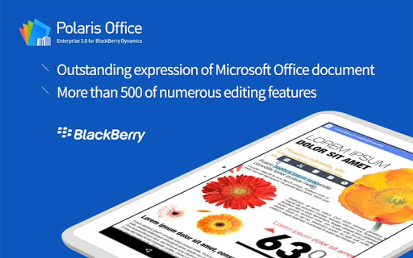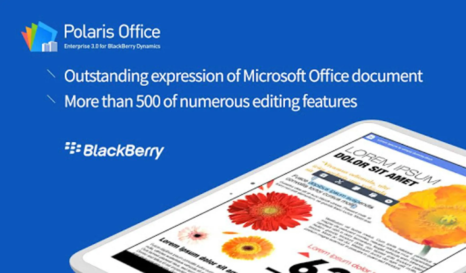 POLARIS Office for BlackBerry is a Mobile Office application that allows BlackBerry Dynamics users to view/edit Microsoft Office (Word, Excel and PowerPoint) documents on Smartphone and Tablet. Users can view/edit text files and view .pdf and .hwp files as well. POLARIS Office’s excellent rendering quality shows all the texts, charts, pictures and etc. of the documents made with Microsoft Office on a PC as the original itself without any losses. And POLARIS Office for BlackBerry provides powerful editing features and an intuitive interface that allows you to edit document easily. Now, you can safely and conveniently view/edit important documents on your Mobile devices.