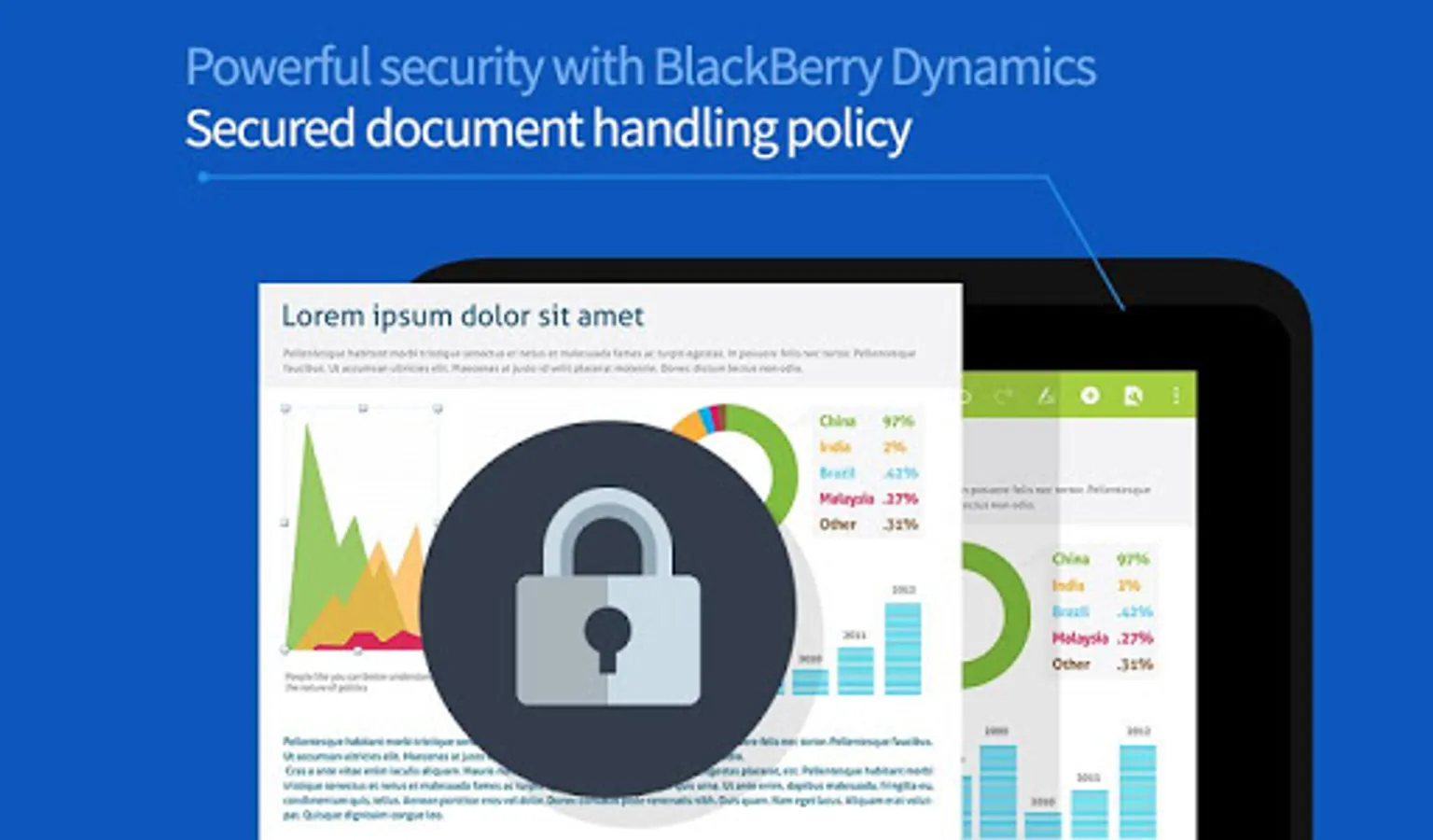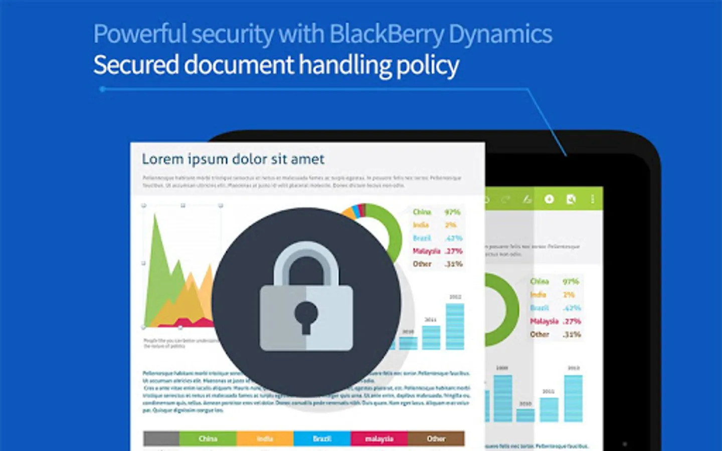 View and edit various document types / Excellent compatibility with Microsoft Office documents / Fast document loading speed / Fabulous Presentation at anytime and anyplace / Powerful security with BlackBerry Dynamics