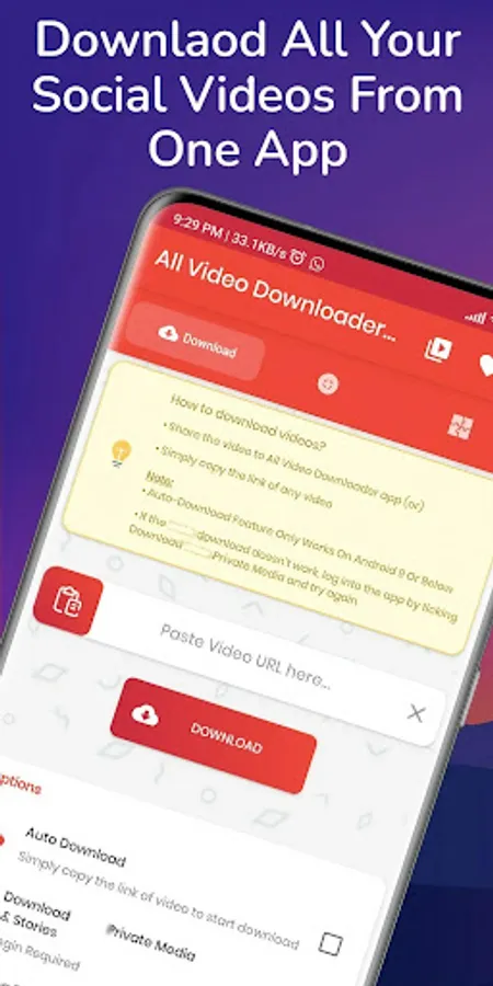 This video downloader app helps you download video with just one click. Enjoy video download with this free video downloader app.