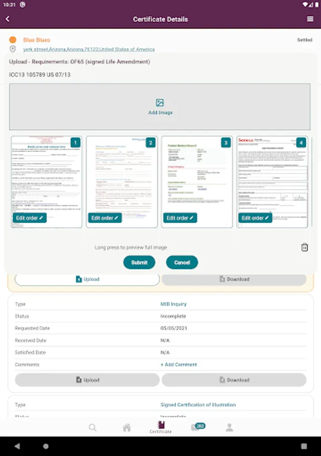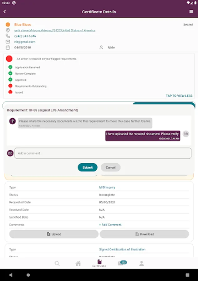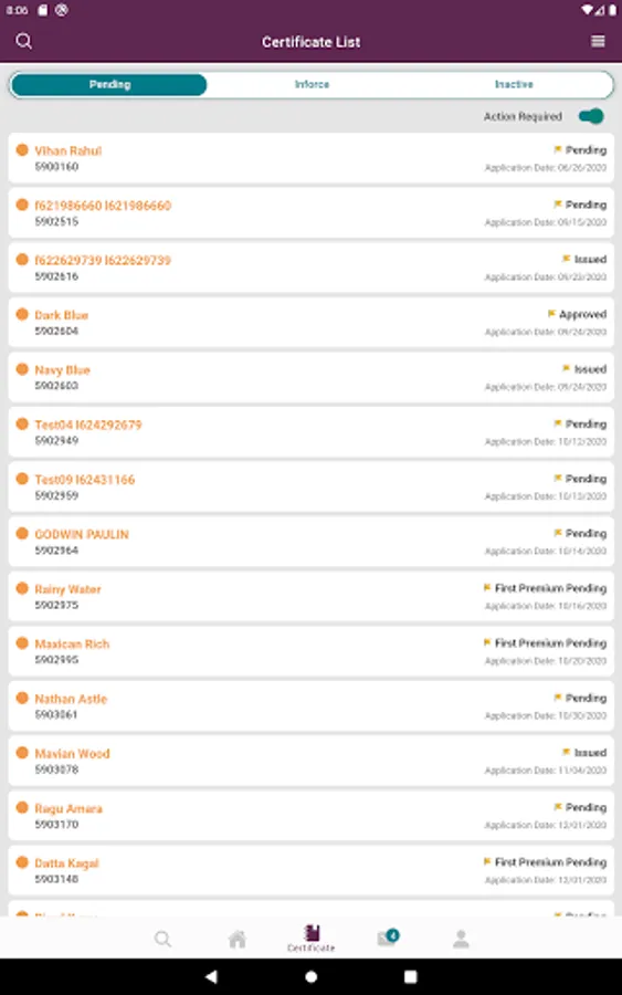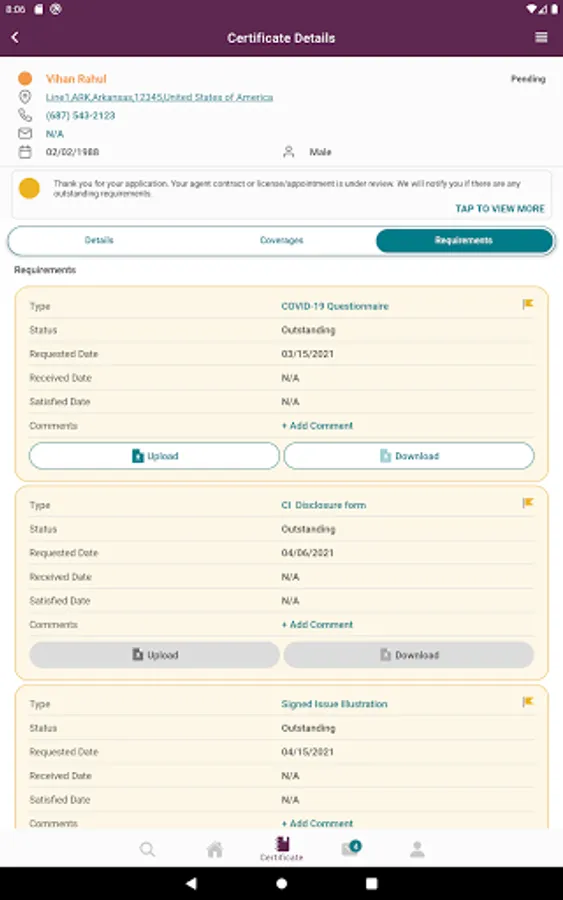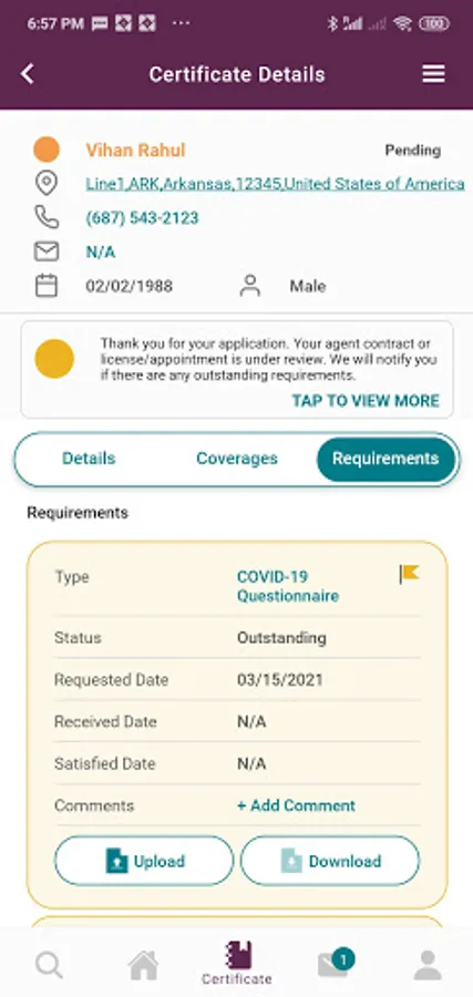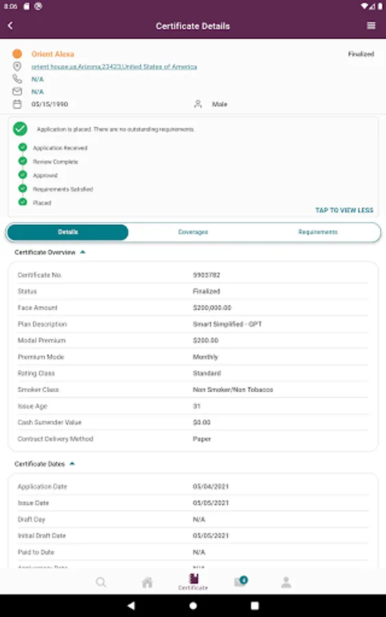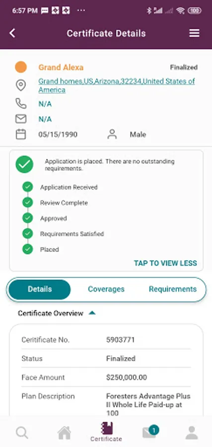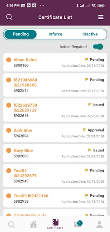 * View progress of recent application within individual certificate details and tap to see total process for application