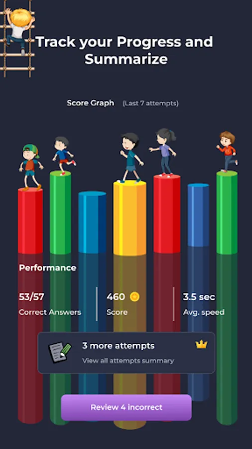 In Math Champ, students unlock new levels and win badges at the completion of daily maths workouts. The questions are based on a variety of math topics, including addition games, subtraction games, multiplication games, division games, fractions games, decimals games, and more. Students earn points for answering questions correctly.