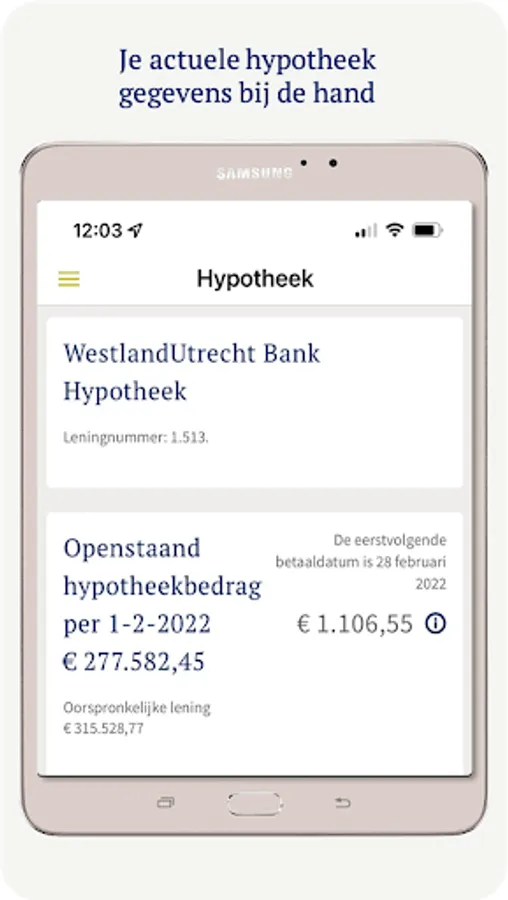 MijnWUB is an online personal environment for customers with a WestlandUtrecht Bank mortgage. In this app you can view your mortgage data and easily manage your mortgage matters yourself.