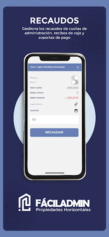 Fáciladmin is a platform that through its apps allows the administration of horizontal properties in real time, optimizing the management and communication of administrative processes between owners, the board of directors and the administration of the horizontal property.