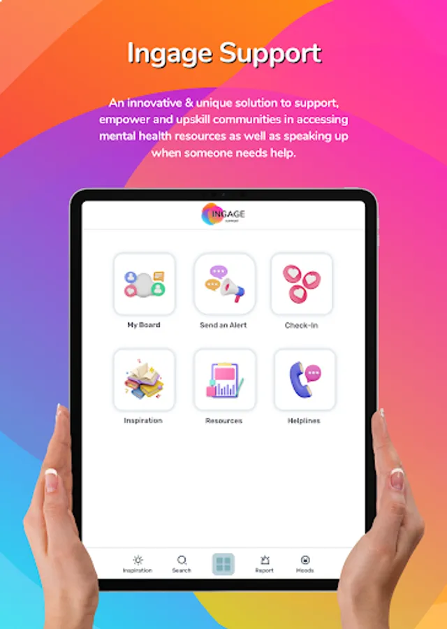 Ingage is a space where mental health resources and advice can be accessed from anywhere in the world. By providing self-help tips, information on mental health, signs to be aware of, and guidance on how to help someone struggling - mental health awareness, prevention and empowerment will be strengthened at all levels of society.