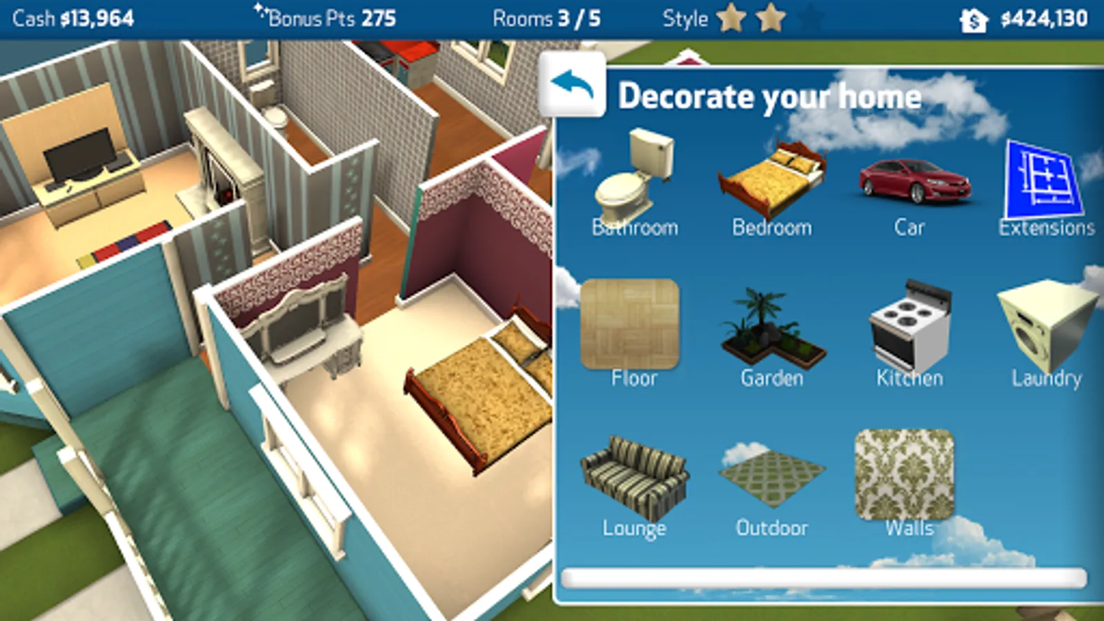 Decorate each room of the house with a consistent vision and style that will make the home appeal to your target buyer. Renovate, build extensions, then head off to auction. Make sure you collect bonus points as you go to spend on exclusive furniture and items in the game store.