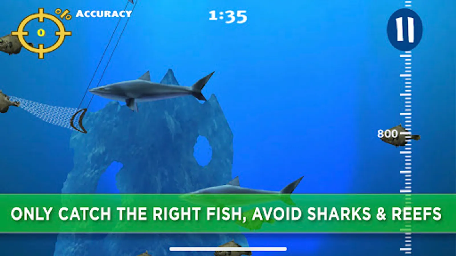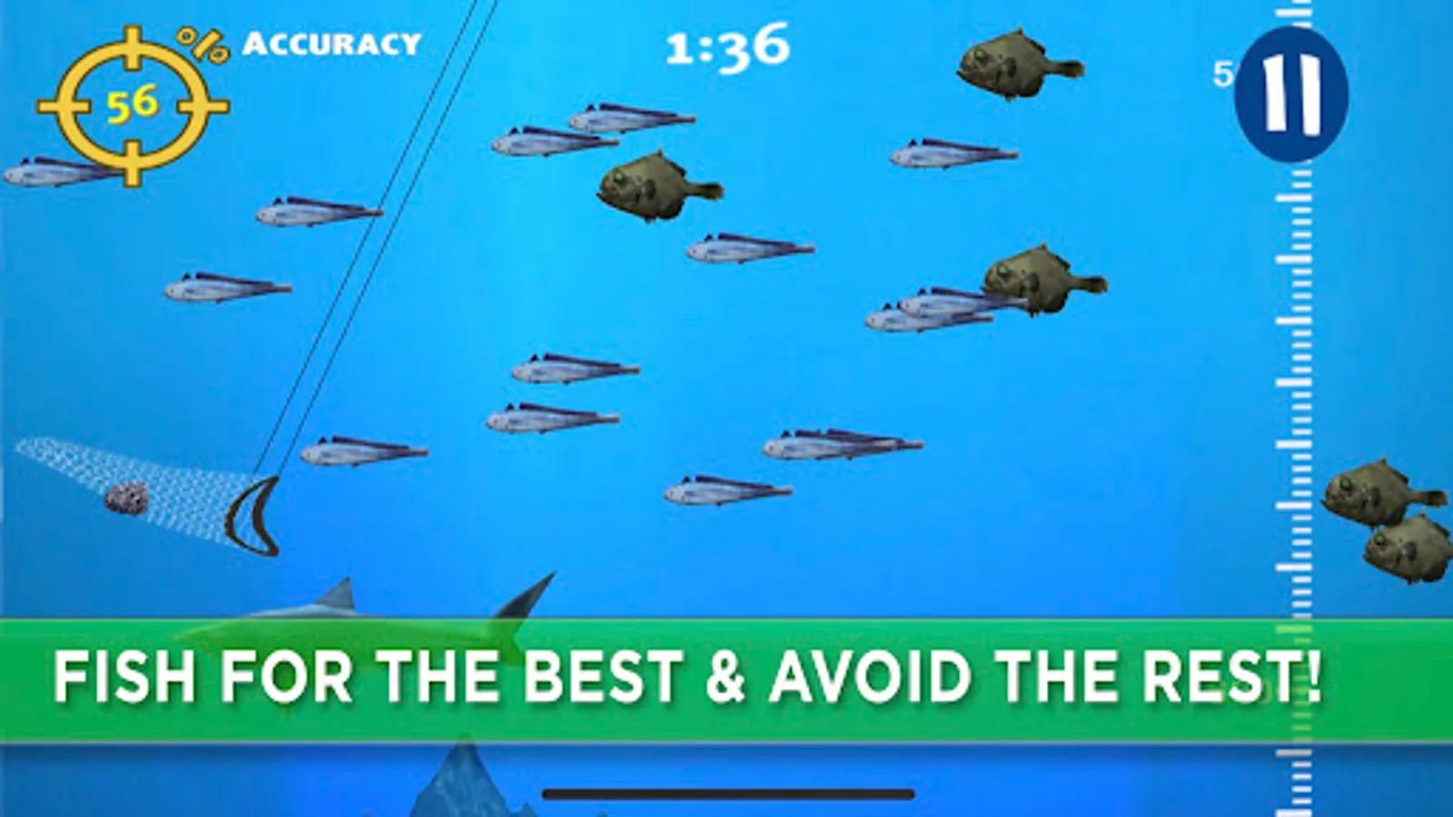 • Control your net to catch the fish that hide