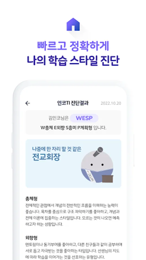 General evaluation of test result type, self-learning method, study style, detailed diagnosis, etc.