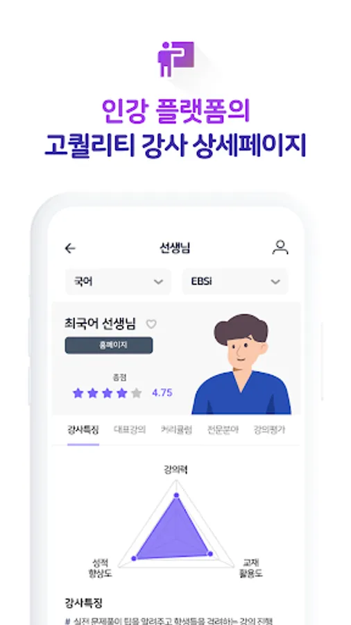 You can compare instructor characteristics, representative lectures, curriculum, specialized fields, and lecture evaluation at a glance.