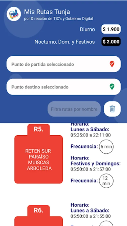 My Routes Tunja, a simple and intuitive app that allows you to search for routes according to your starting point and destination. With the app you can: