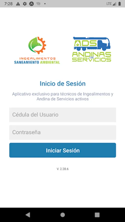 Mobile application for Ingealimentos and Andina de Servicios technicians. Allows you to consult and update the services scheduled for the technician. Allowing to generate and complete the report and the service report.
