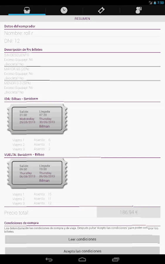 It allows the creation of users to streamline the buying process, automatically saving personal data. From this application you can view and manage all your tickets purchased, allowing to modify or annul or on the website.
