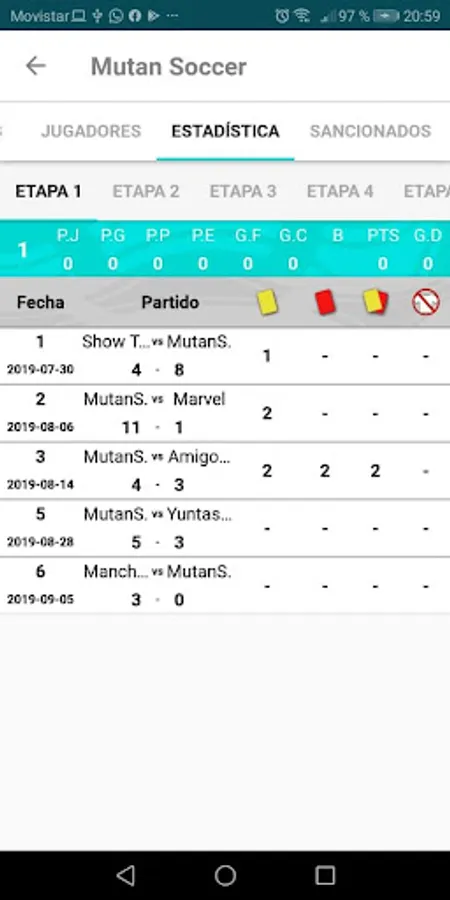 Detailed information on penalties, players, standings, results, news, contact, etc. of the Cancha Don Carmelo lightning tournament