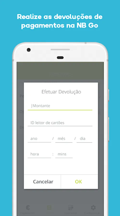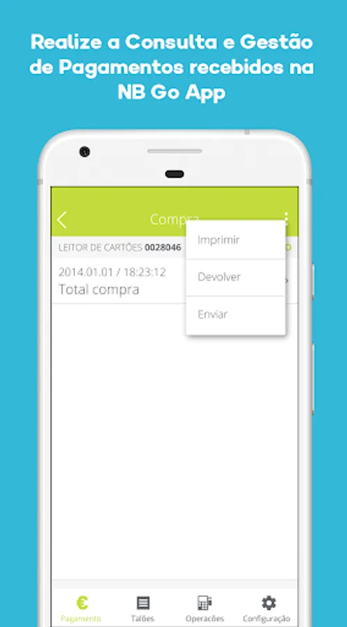 With NB Go of the NEW BANK you can already receive the payment of your customers, with card or MB WAY, in the time and in any place. Simply install the APP on your smartphone and connect it with bluetooth to the NB Go Payment Terminal.