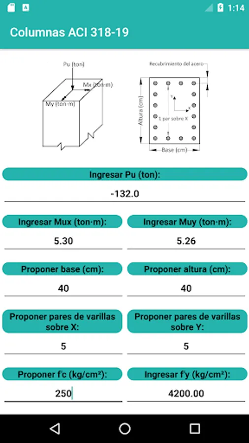Designs rectangular reinforced concrete columns subject to axial load and bending according to the American Concrete Institute regulations 318-19 (ACI 318-19).
