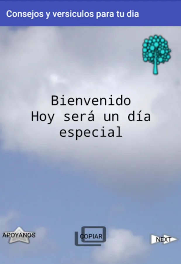 This application is designed to motivate you through messages, tips and Bible verses that give a glimmer of hope to your day, you can copy them and share them with your friends, you can click on the button help us so that we can continue making good applications.