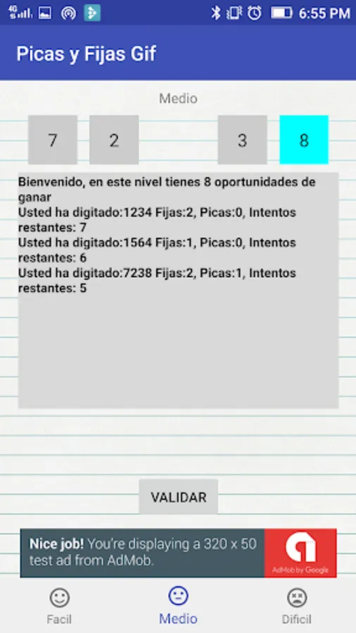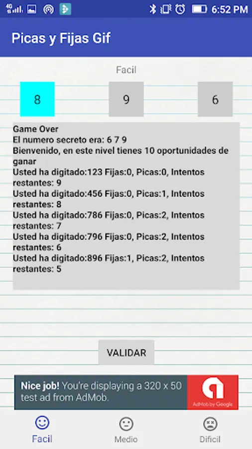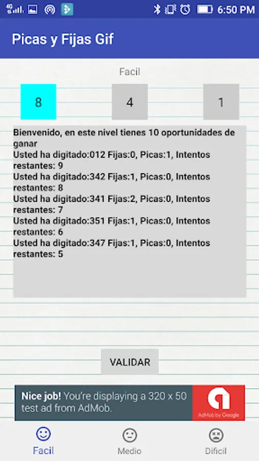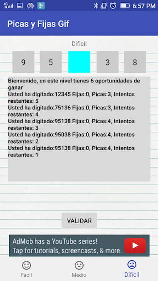 THE GAME OF SPADES AND FIXES now on your cell phone, with this game you can practice and improve your mental agility. Spades and Fixed is a well-known logic game, in which the player must guess a number given by the program which can be 3 digits in easy level, 4 digits in medium level and 5 digits in difficult level.